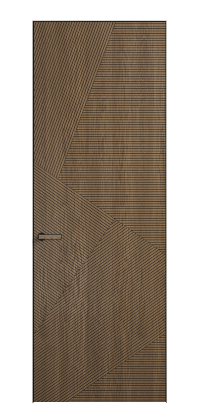 Это полотна с рельефной фрезеровкой. Этот прием делает интерьер объемным, тактильным, вносит интересную текстуру и создает современный образ. Волнистый рельеф может быть выполнен по ламелям из массива дуба в древесных матовых отделках, либо исполнен по натуральному и экологически безопасному материалу — ХДФ, покрытому гладкой эмалью актуальных оттенков.